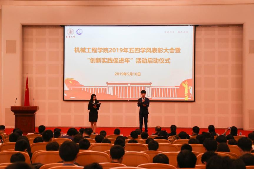 5月10日,beat365英国官网网站在松江校区图文信息中心第一报告厅举行2019年五四学风建设大会暨“创新实践促进年”活动启动仪式。机械学院党委书记张千里、学生处副处长赵彦明、机械学院副院长周其洪、机械学院党委副书记李宁蔚、企业代表以及学院师生代表与会。