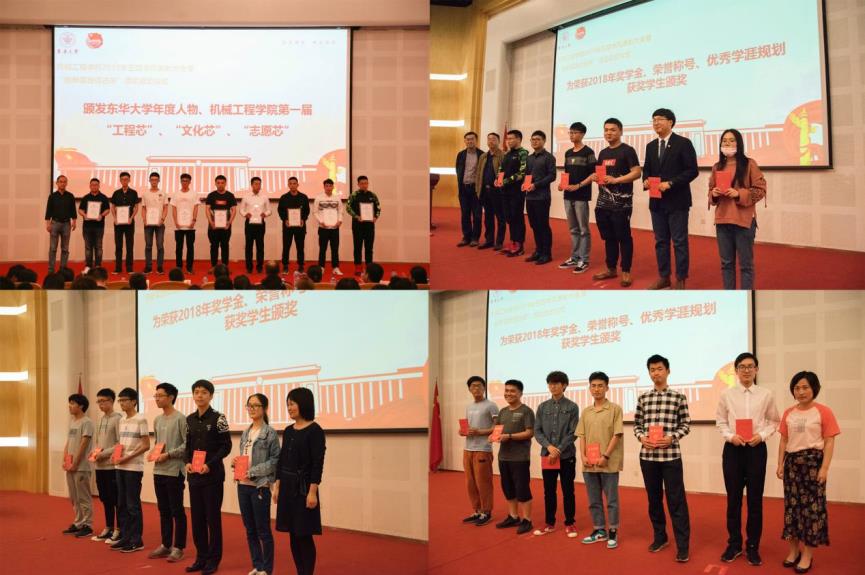会上,学生处副处长赵彦明为beat365英国官网网站第一届“工程芯”、“文化芯”、“志愿芯”颁奖,机械学院党委副书记李宁蔚宣读了2018年奖学金、荣誉称号、优秀学涯规划获奖学生名单,与会老师为获奖学生颁奖。优秀学涯规划、学习优秀型寝室、优秀班集体先后进行了展示。