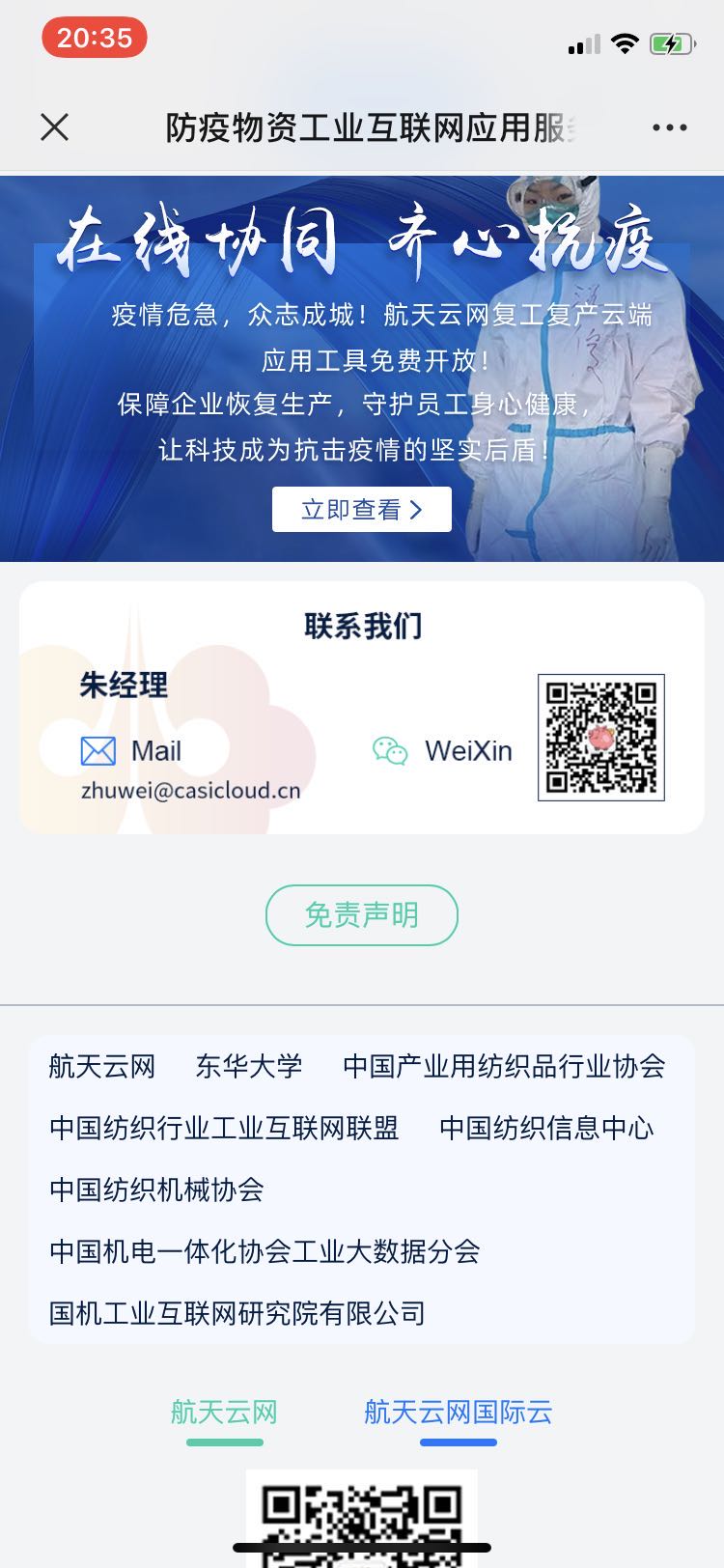 疫情爆发牵动着东华机械人的心。beat365英国官网网站院长张洁教授和智能制造研究所所长鲍劲松教授在大年初六(1月30日)紧急商讨如何利用现有研究成果和资源,为快速提升防疫物资产能贡献力量。商讨决定要发挥工业互联网技术优势,建设防疫物资工业互联网应用服务平台,提供透明准确的防疫物资产能情况,有效解决防疫物资保障工作中“缺材料、缺设备、缺专家、产能低”的问题,将团队从事工业大数据技术、工业互联网、制造资源调度、纺织服装领域网络化协同制造的研究成果应用于平台建设。之后,张洁教授和鲍劲松教授组织智能制造研究所老师,形成防疫物资工业互联网应用服务平台的建设方案,并汇报给俞建勇校长。俞校长在第一时间回复,给予了大力支持。中国产业用纺织品协会李桂梅副会长、beat365英国官网网站情报研究所张福元老师提供了帮助。同时,张洁教授和鲍劲松教授组织了外部资源,联合中国产业用纺织品协会、中国纺织品工业互联网联盟、中国纺织工业联合会信息中心、中国纺织机械协会,中国机电一体化协会工业大数据分会等行业单位组织,以及航天云网、国机工业互联网研究院有限公司等知名工业互联网技术单位,共同建设 “医疗卫生用纺织品防疫物资工业互联网应用服务平台”(以下简称“平台”)。