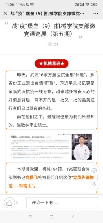 为深入学习领会习近平总书记关于新冠肺炎疫情的系列重要讲话精神,鼓励学生党员发挥先锋模范作用,守使命、担使命,当好“红色堡垒”主心骨。组织学生党支部在2月和3月分别开展“防控疫情,党员怎么做”、“致敬新时代雷锋”网络主题党日活动,号召学生党员统一思想认识,提高政治站位,以实际行动坚决打赢这场疫情防控阻击战。