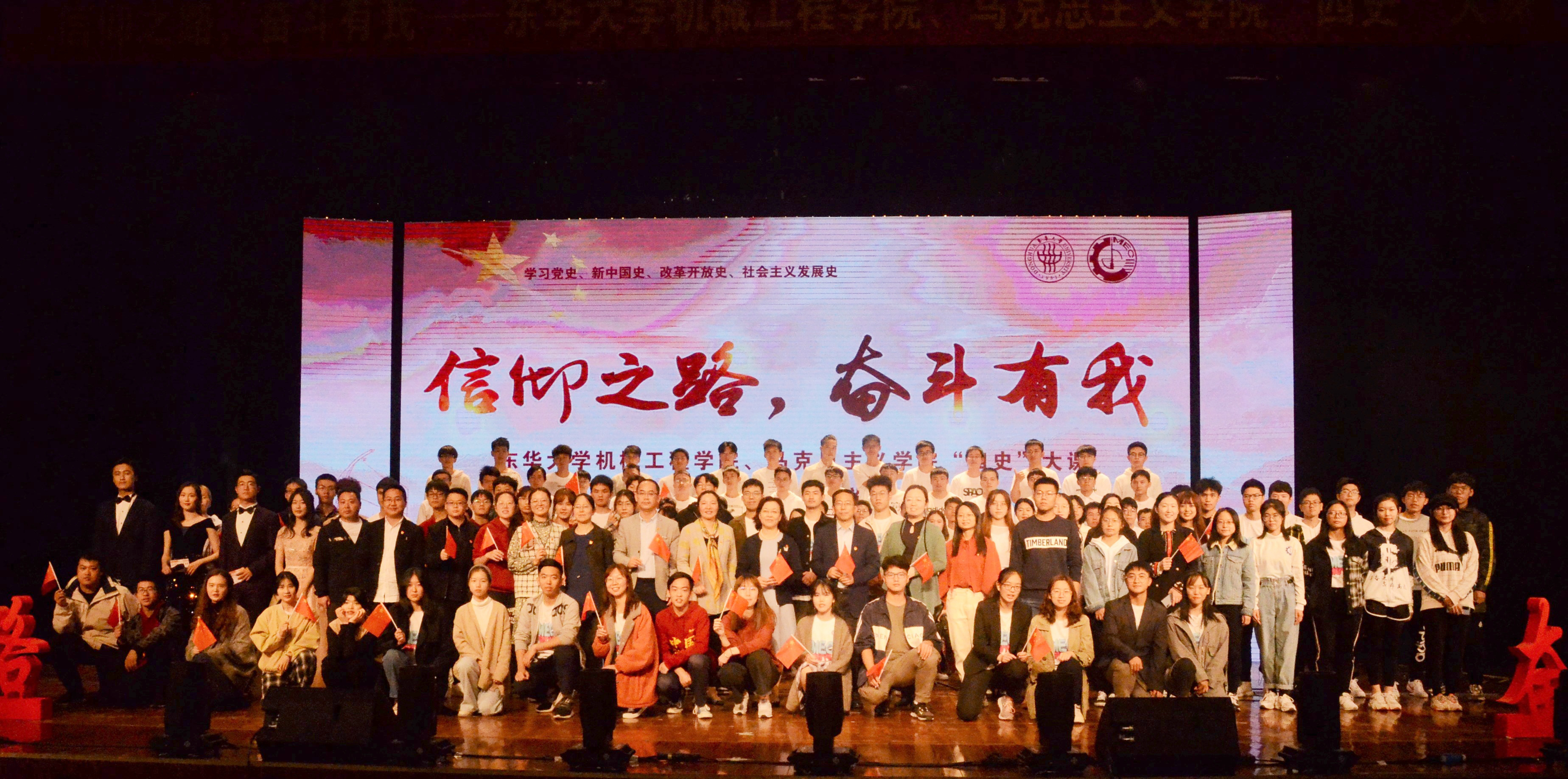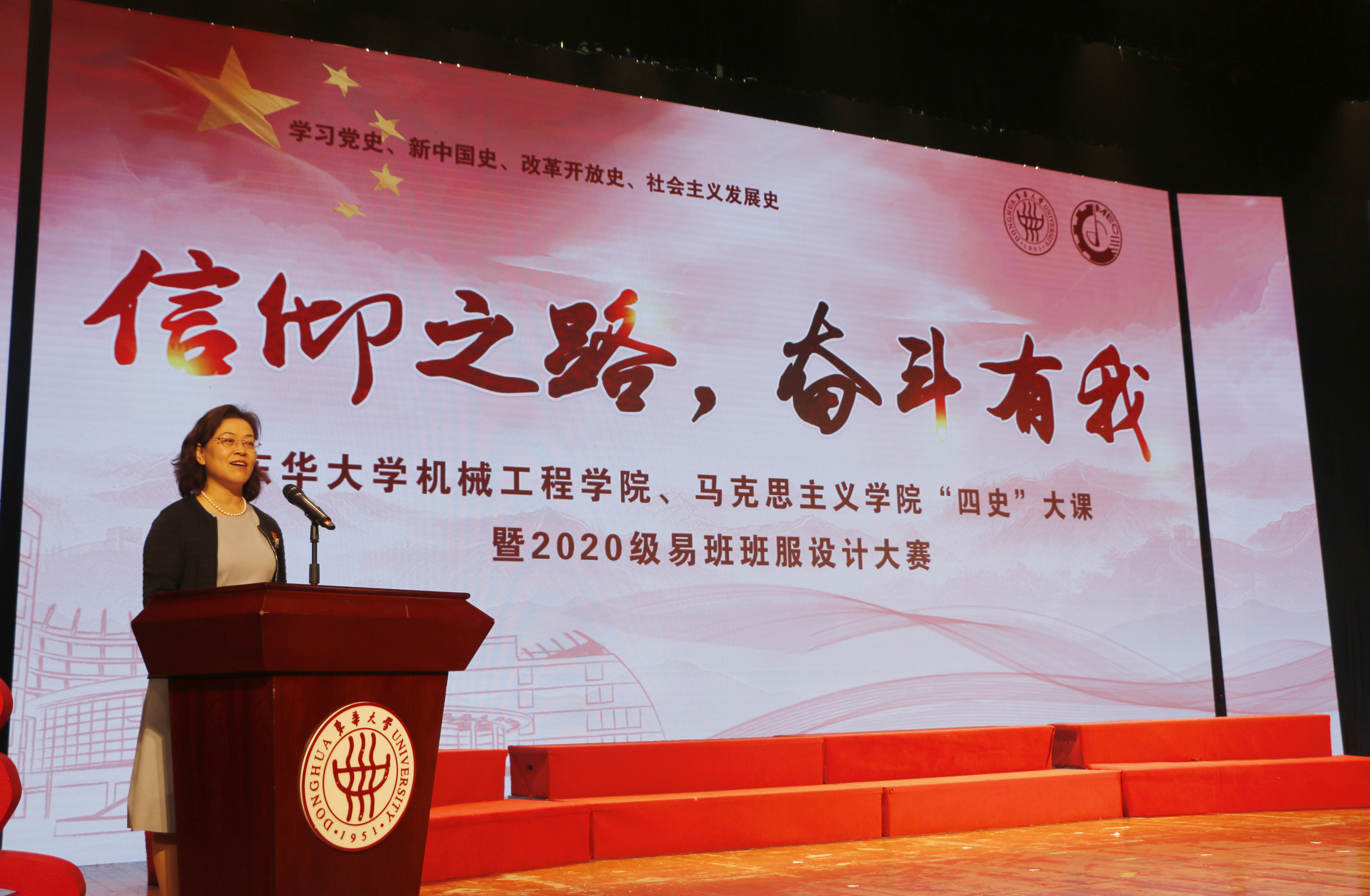 “日月辉映,孕育灿烂人类文明;经天纬地,织就绚丽锦绣中华……”伴随着《东华之歌》的悠扬旋律,beat365英国官网网站、马克思主义学院“信仰之路,奋斗有我——‘四史’大课”于11月3日在松江校区锦绣会堂拉开帷幕。从老一辈华纺人到新一代东华人,穿越时空的记忆,以共同的“东华人”身份,演绎党的辉煌历史,在砥砺奋进中续写新的时代华章。校党委副书记崔运花出席大课并致辞,beat365英国官网网站党委书记王新厚、马克思主义学院党总支书记戴叶萍、党委组织部副部长、党校副校长徐玥、学生处副处长赵彦明及两学院党员师生、全体20级新生参加大课。