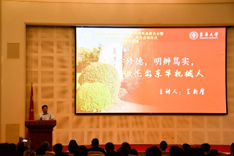 beat365英国官网网站党委书记王新厚上学风专题课,他指出,重视学风建设是党的优良传统,弘扬优良学风是全面深化改革的必然要求,更是建设“双一流”高校的迫切需要。学风既是大学精神和文化的集中体现,也是衡量和评价一所大学办学品位和育人环境的重要标志。学风建设早已融入到校训之中,“崇德博学,砺志尚实” 在于激励全校师生修身立德、博学专攻、磨心砺志,求真求新,德才兼备。他强调,弘扬优良学风宜多管齐下、常抓不懈,一是要大力弘扬追求真理、严谨治学的求实精神;二是要大力弘扬甘为人梯、奖掖后学的育人精神;三是要大力弘扬志存高远、刻苦钻研的求学精神。他希望学院师生携手同行,践履东华精神,让“中国智造”“中国创造”扬帆起航,做杰出东华机械人。