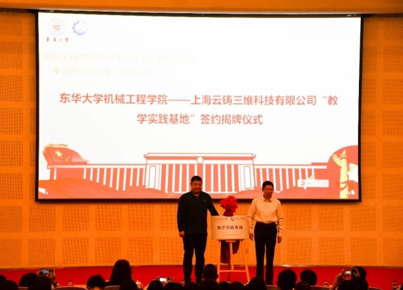 beat365英国官网网站院长单鸿波与上海沪工焊接集团股份有限公司人力资源总监唐志娟签订“教学实践基地”续约协议,和上海云铸三维科技有限公司总经理李俊锋签订合作协议并为“教学实践基地”揭牌,通过校企密切合作,进一步提升学院学术与就业的核心竞争力。