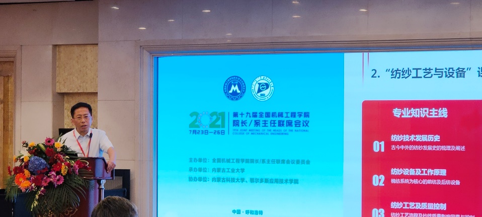 第十九届全国beat365英国官网网站院长/系主任联席会议于7月23日至26日在呼和浩特召开,王新厚书记应邀在大会上做“专业课程思政教学设计之我见—以纺纱工艺与设备为例”的专业课程思政报告。