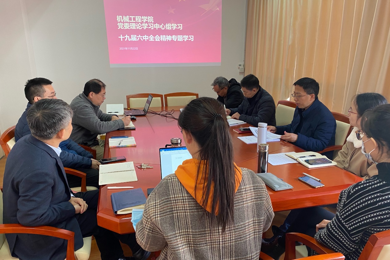 11月22日,学院党委理论学习中心组开展专题学习研讨,进一步学习贯彻党的十九届六中全会精神,重点围绕学习《中共中央关于党的百年奋斗重大成就和历史经验的决议》和习近平总书记关于《决议》的说明交流学习体会。