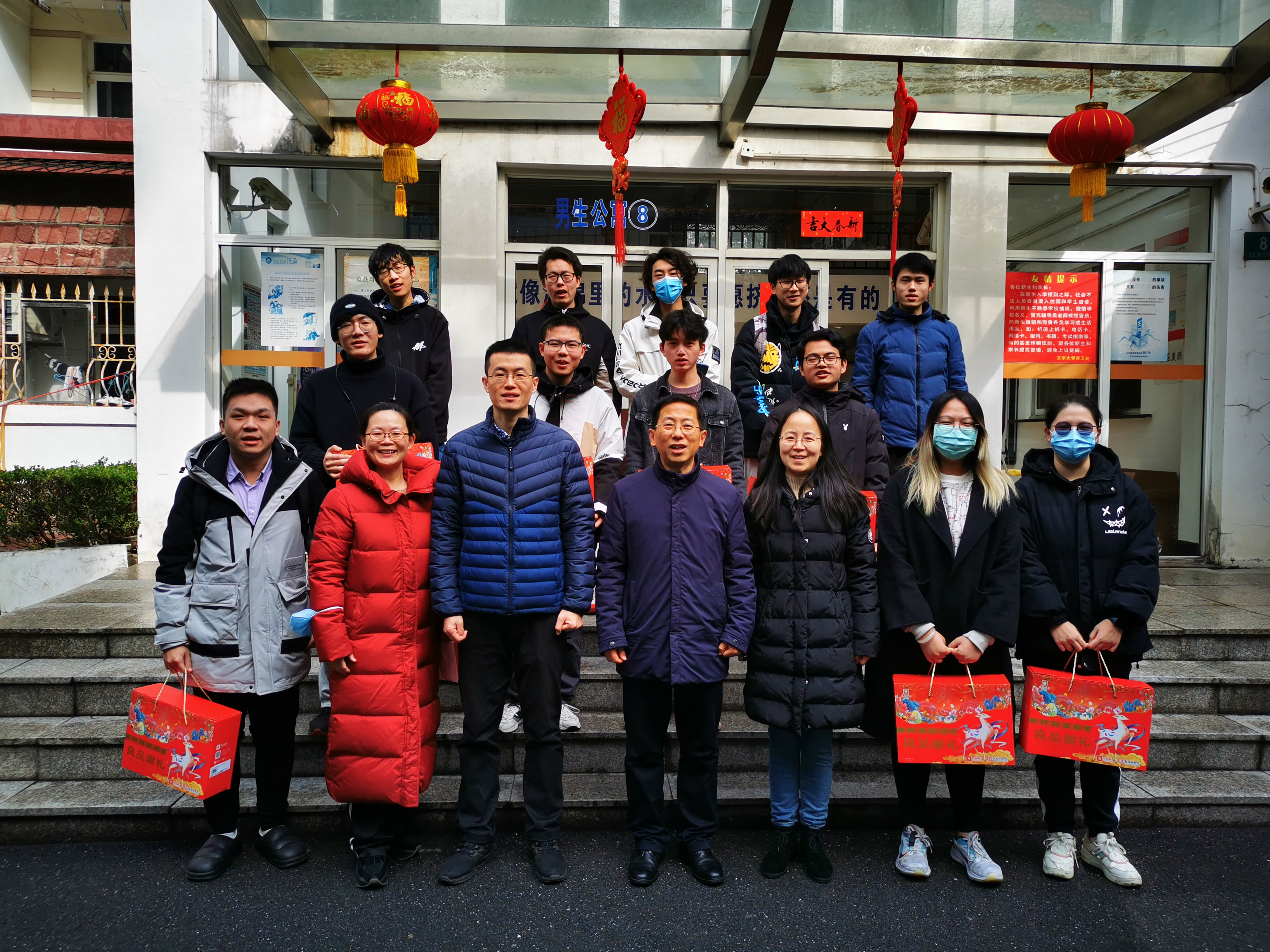 学院为每位留校同学精心准备新春大礼包,给同学们带来“家”的温暖。学院领导一行先后走访实验室、学生宿舍、并与学生亲切进行交流,倾听同学们心声,了解大家的生活情况,并嘱咐同学们留校期间注意防疫安全、消防安全、减少不必要外出和流动,遵守学校相关规定,利用留校时间搞好科研和学习,遇到困难及时与学院老师联系。学校各职能部门也为留校学生提供各种服务,全力做好学生后勤保障工作,让同学们安心留校过年。
