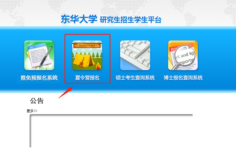 一、登录beat365英国官网网站研究生招生学生平台(https://yzks.dhu.edu.cn/) 、选择并点击“夏令营报名”。(平台开放时间:工作日9:00-16:00)