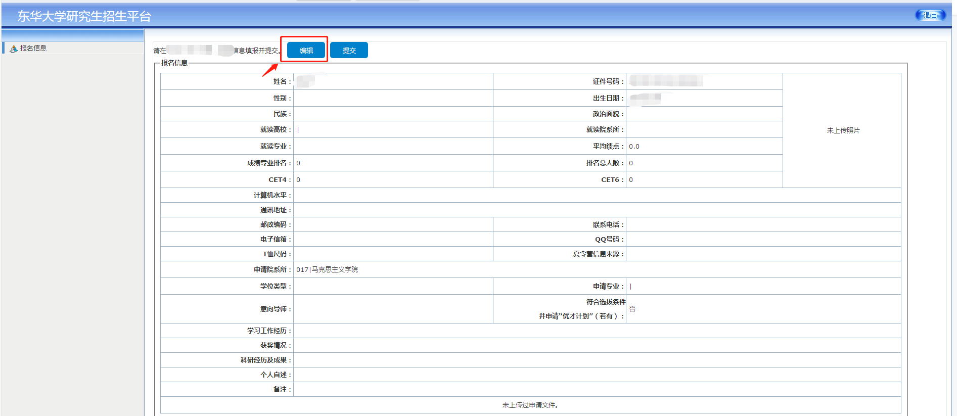 2、认真阅读招生院系的报名通知,每人只能填报一个申请志愿,如未通过该志愿审核,可申请其他志愿;