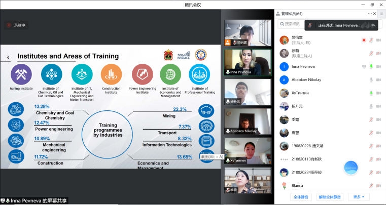 活动中,杨升元与佩夫涅娃分别代表两所学校向各位参会老师、同学致欢迎辞。库兹巴斯国立技术大学阿巴科夫副教授就现代中俄科技发展情况与西方科技发展情况进行了对比分析。本系列讲座旨在建立中俄科技交流平台,为我校工业设计方向人才培养、学科建设及国际化合作奠定基础。