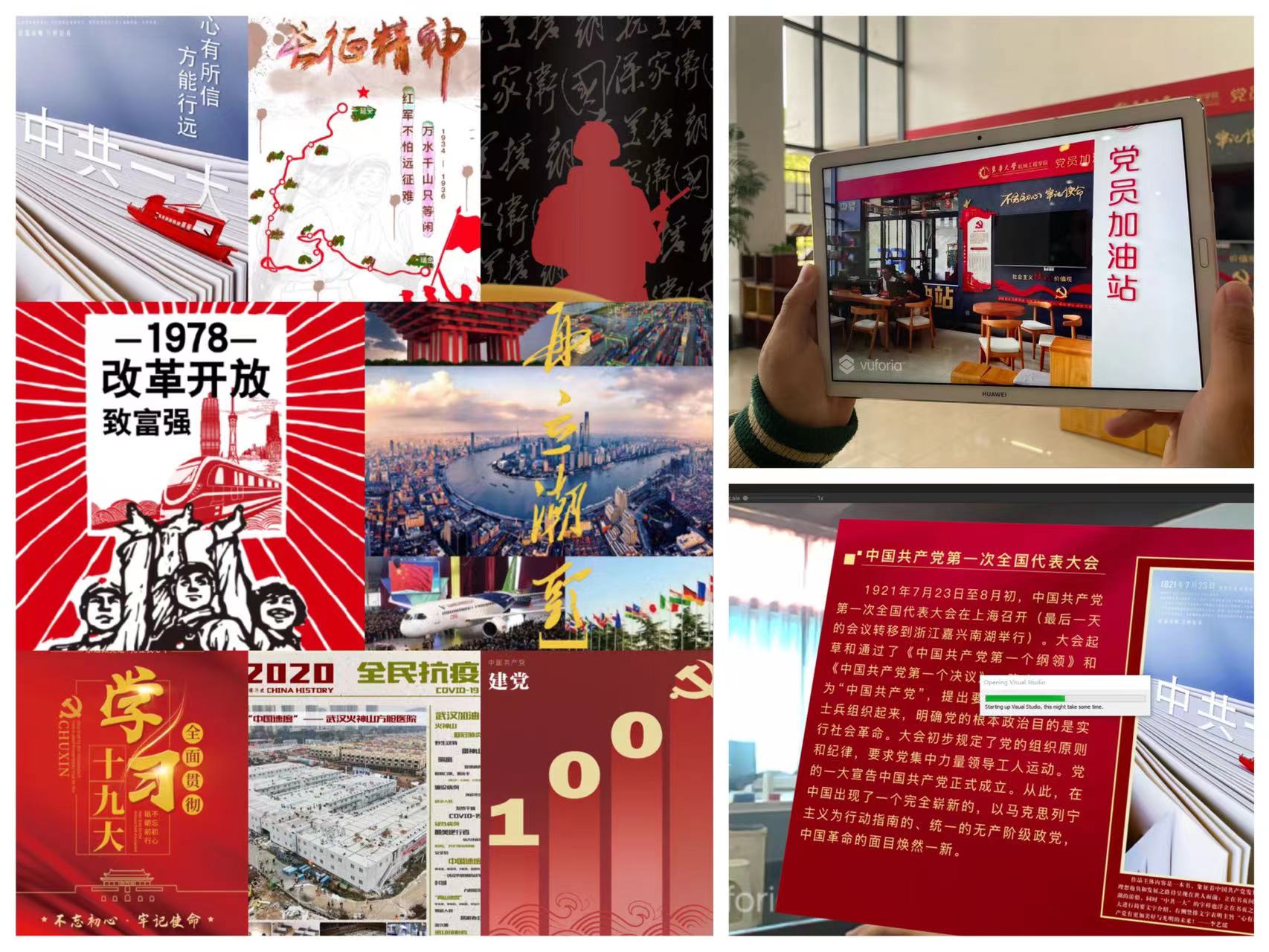 学院党委坚持以党的政治建设为统领,不断增强忠诚拥护“两个确立”、坚决做到“两个维护”的政治自觉、思想自觉和行动自觉,通过党委理论学习中心组、基层党支部“三会一课”、团组织青年大学习等形式,及时部署组织全院师生党员深入学习贯彻习近平总书记在省部级主要领导干部“学习习近平总书记重要讲话精神,迎接党的二十大”专题研讨班上的重要讲话精神,开展《习近平在上海》《当好改革开放的排头兵——习近平上海足迹》《习近平谈治国理政》(第四卷)等专题学习,领会习近平总书记的初心思想和治国理念。通过教工党支部与学生党支部共建,以“红色阵地+线上展示+AR践创”的创新模式,开展“从一大走向二十大:伟大奋斗 光辉历程”主题展,组织师生回顾中国共产党历次全国代表大会,从党的奋斗历程和奋进新时代的滚滚历史洪流中,从以奋进之东华筑梦祖国的时代目标中,汲取营养,激发灵感,创作讴歌党、讴歌祖国、讴歌社会主义的设计与AR作品,深刻感悟新时代党的创新理论的思想伟力和实践伟力,把真理的伟力转化为落实立德树人根本任务、推动学院事业发展的强劲力量。