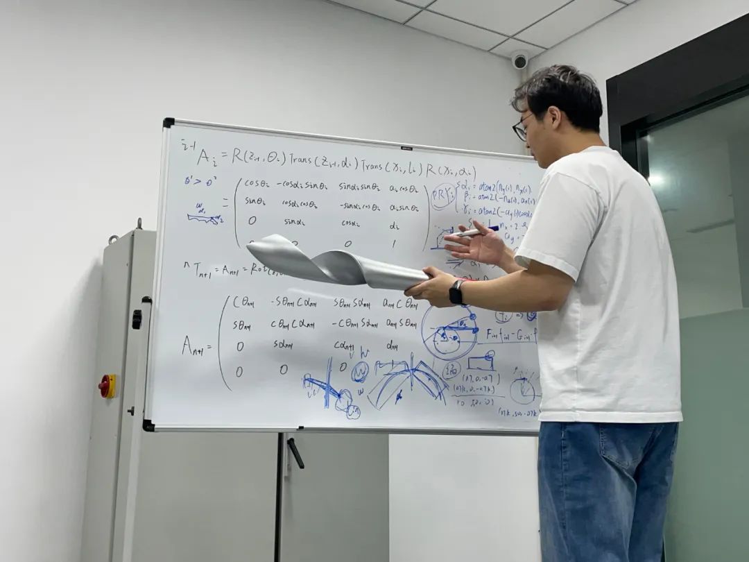 第一次项目任务的顺利完成,给李麒阳树立了实现高水平科技自立自强的信心和勇气。后续他又在导师的带领下,积极投身到轨道交通重要结构件的复合材料实验研究中去。由于轨道交通结构件尺寸较大,使用常规编织机及牵引装置进行编织效果不佳,针对这一问题,他与团队开发出国内首套由双机器人协同牵引装置配合大型变轨编织机的自动化控制系统,解决了大尺寸异形结构件编织过程精度不高的痛点,保证了产品的力学性能。