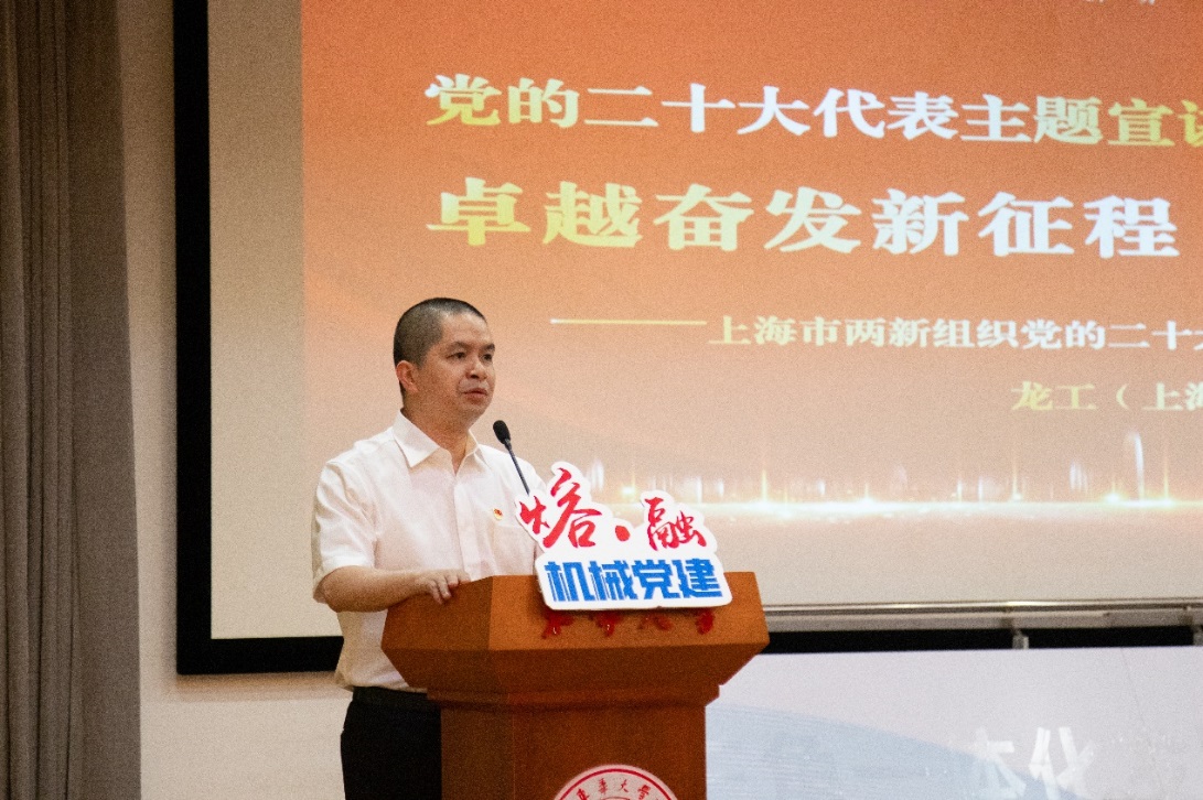 一场“党建引领”主题宣讲,一项“服务发展”启动仪式,一次“联学联建”圆桌交流。5月16日,“党建引领聚合力,服务发展建新功”机械学院推进“一融双高”联学联建活动在松江校区举行,活动邀请到党的二十大代表、上海市两新组织党的二十大精神“百师百讲”巡讲专家宣讲团成员、龙工(上海)机械制造有限公司调度室主任邹丰恒作主题宣讲。松江区发展和改革委员会主任孙文杰,松江区党建服务中心主任金晓燕,松江经济技术开发区党工委委员杨茜,两新组织企业代表库卡柔性系统(上海)有限公司党支部书记张引,企福天地党支部委员宋丹丹,我校校党委常委、党委宣传部部长任晓杰、党委组织部副部长李宁蔚、机械学院党委书记王新厚等参加活动。
