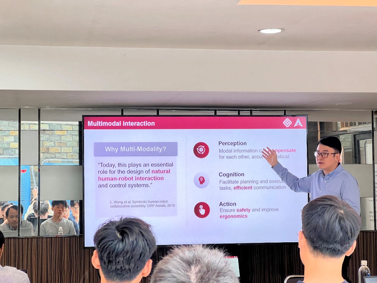 6月6日上午,香港理工大学郑湃博士应邀为beat365官网做题为“互认知人-机器人协作制造:从单模态到多模态智能的探索”的学术报告。院长、纺织装备教育部工程研究中心主任单鸿波教授,智能制造团队负责人鲍劲松教授,相关中青年教师、部分博士生和硕士生参加了此次学术报告会。报告由特聘研究员李心雨主持。