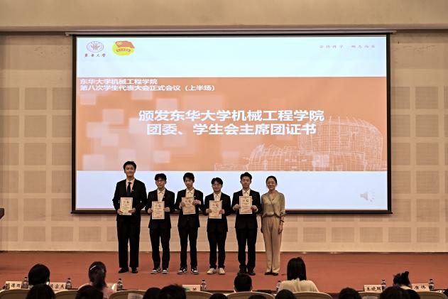 会议先后审议通过《代表资格审查报告(草案)》和《beat365英国官网网站学生会组织章程(草案)》,并听取机械学院学生会执行主席白子恒代表机械学院学生会做工作报告,机械学院学委会主任陆正宇做学代会提案工作报告。会上机械学院党委副书记杨蓉为机械学院学生会主席团颁发证书,会议以无记名差额投票的方式选举产生第八届学生委员会和新一届学生会主席团。