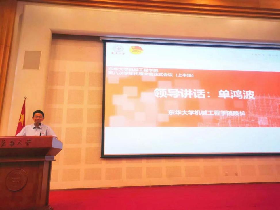 单鸿波在讲话中指出,学生代表大会是学院教学科研活动中的一个重要会议,在学院的学科建设、人才培养、学生党建思政、学生合法权益保障等方面有着十分重要的作用。代表学院党政对全体学生干部、骨干和代表提3点希望:一进一步加强党的二十大精神学习教育,传承伟大建党精神、勇担民族复兴大任;二进一步提高创新能力和工作水平,切实增强服务意识和责任意识;三进一步加强队伍建设,发挥灯塔效应,引领广大青年担当尽责。最后他学生骨干发出四条倡议:树立远大志向,把好人生“方向盘”;崇德,夯实人生“硬底盘”;博学,激活人生“发动机”;砺志尚实,奋斗拼搏;希望新一届学生骨干一定能不负使命,发扬东华机械人踏实严谨优良作风,以饱满的精神状态和旺盛的工作热情,主动担当作为。