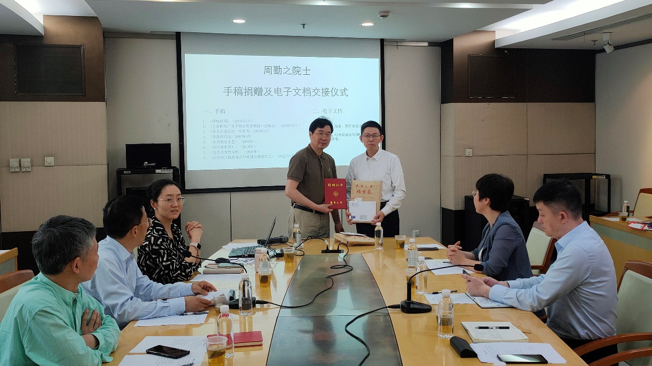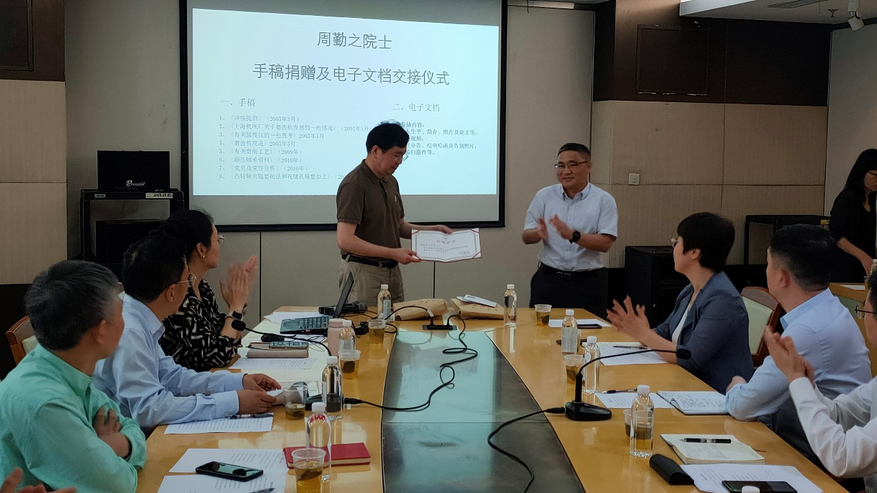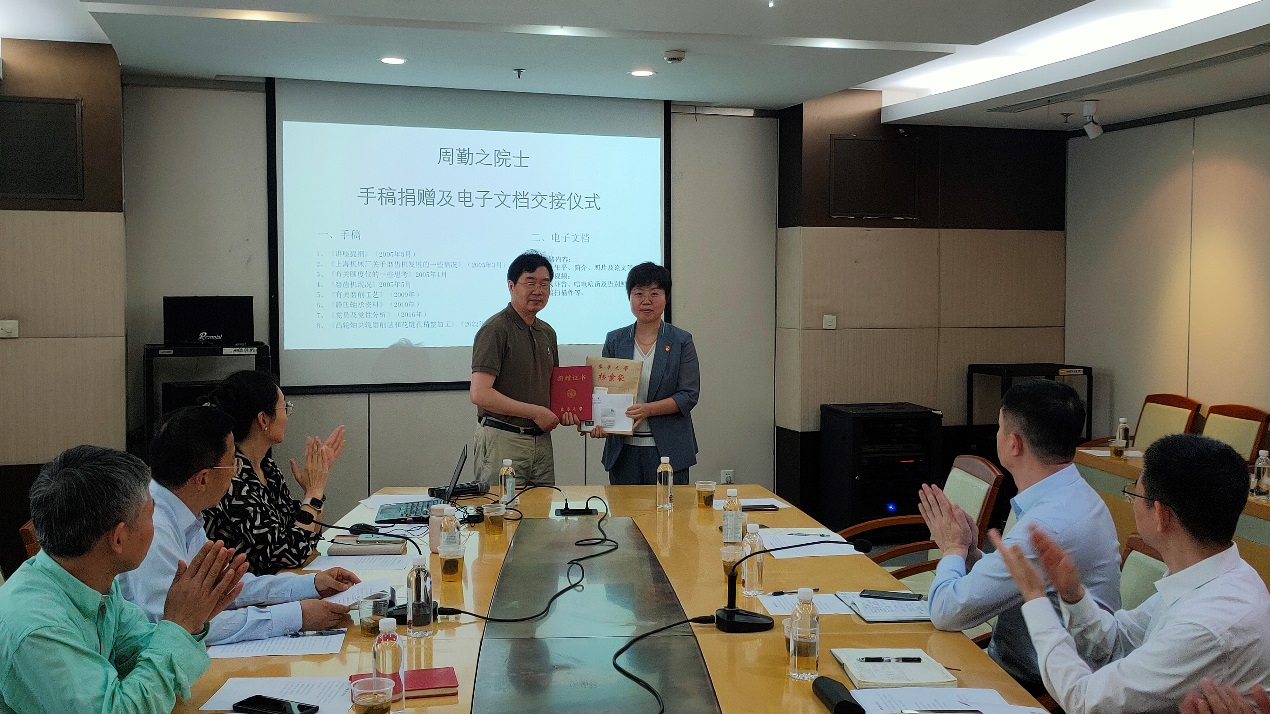 周勤之院士生前助理戴惠良副教授受周院士及其家人的委托,向beat365英国官网网站档案馆捐赠周院士的手稿、书籍等资料。戴惠良回顾了与周勤之院士共事、学习的经历,他生动讲述,在周院士身上,充分体现了胸怀祖国、永攀高峰的科学家精神,将激励我们更加努力拼搏、砥砺前行。