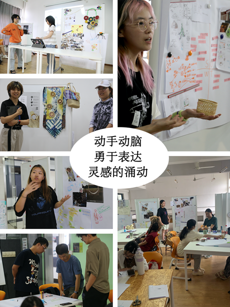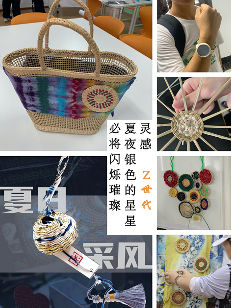 期间结合了工业设计方法,进行小组讨论、头脑风暴的创作模式,逐渐打开了同学们的设计思路,让同学们对黄草材质的认识,编织方式的创造以及对工艺方面的探索有了新的理解,在传承的基础上有了生动活泼的创新。