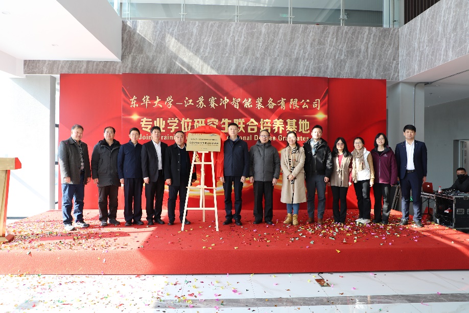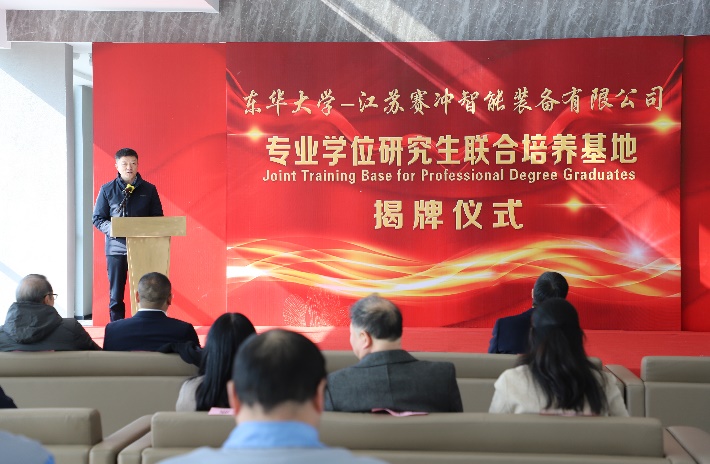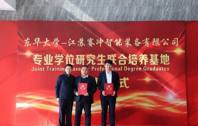 1月25日,beat365英国官网网站机械学院与江苏赛冲智能装备有限公司“专业学位研究生联合培养基地”授牌仪式在南通顺利举行。副校长陈革,江苏海门港新区党工委书记黄卫国,院长、纺织装备教育部工程研究中心主任单鸿波,江苏赛冲智能装备有限公司董事长王海涛,海门科技局党组副书记、副局长季煜鑫,海门港新区管委会副主任王彬,学院党委副书记杨蓉、副院长白涛、校外基地负责人王永兴教授及部分相关老师等参加本次活动。