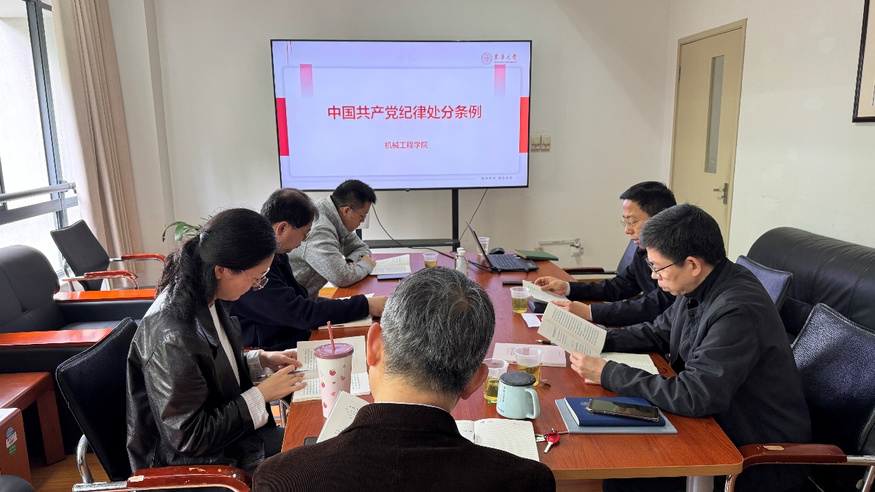4月29日,机械学院党纪学习教育读书班举行第一次集中学习研讨会,本次集中学习研讨以习近平总书记关于加强党的纪律建设的重要论述学习以及《中国共产党纪律处分条例》中党的政治纪律专题学习为重点,在前期自学的基础上开展专题领学、精读研读以及交流研讨。学院领导班子认真研读《中国共产党纪律处分条例》,坚持原原本本学、逐章逐句学、联系实际学,先学一步、学深一层,充分发挥示范带头作用。