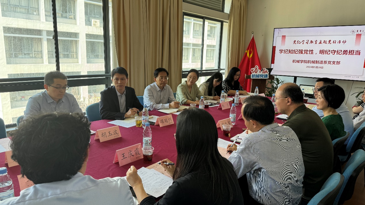 5月28日,党委副书记项延训参加机械制造系教工党支部党纪学习教育“学纪知纪强党性,明纪守纪勇担当”主题党日活动。beat365英国官网网站党委组织部副部长胡玉波、机械学院党委书记王新厚、副书记杨蓉、专职党务干部黄璐以及机械制造系党支部全体党员参加。活动由机械制造系党支部书记鲍劲松主持。