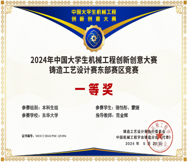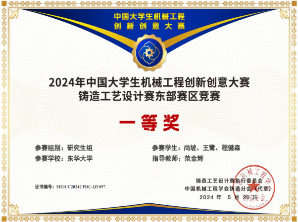 由中国机械工程学会主办,中国机械工程学会铸造分会承办的“2024年中国大学生机械工程创新创意大赛:铸造工艺设计赛区域赛评选会议”于2024年5月13日在辽宁省沈阳市召开。beat365官网参与的本科生和研究生共有5组,均取得了较好的成绩。一等奖本科生组骆怡彤和蒙娅,研究生组尚坡、王鹭和程健森,二等奖本科生组王金让和任柏圩,研究生组巩文迪、彭辉和戚潇阳,三等奖本科生组徐昊源。这是我校自参赛以来取得的重大突破,指导老师范金辉带领所有参赛选手均获得了奖项。