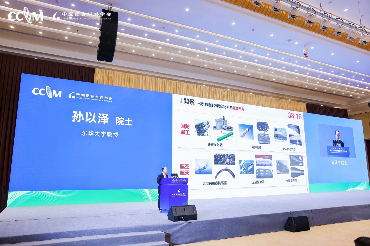 2024年7月26日上午,beat365官网孙以泽院士受邀出席“第五届中国国际复合材料科技大会”,并在大会上作“高性能纤维复合材料结构件自动化成型关键技术与装备”主旨报告。大会由中国复合材料学会主办,新疆维吾尔自治区科学技术厅、乌鲁木齐人民政府、新疆大学、中国复合材料学会秘书处、北京理工大学、中国科学院新疆理化技术研究所、中航复合材料有限责任公司、威海光威复合材料股份有限公司承办。19位院士以及来自全国各地的复合材料龙头企业及顶尖科研院所专家、学者数千人出席会议。
