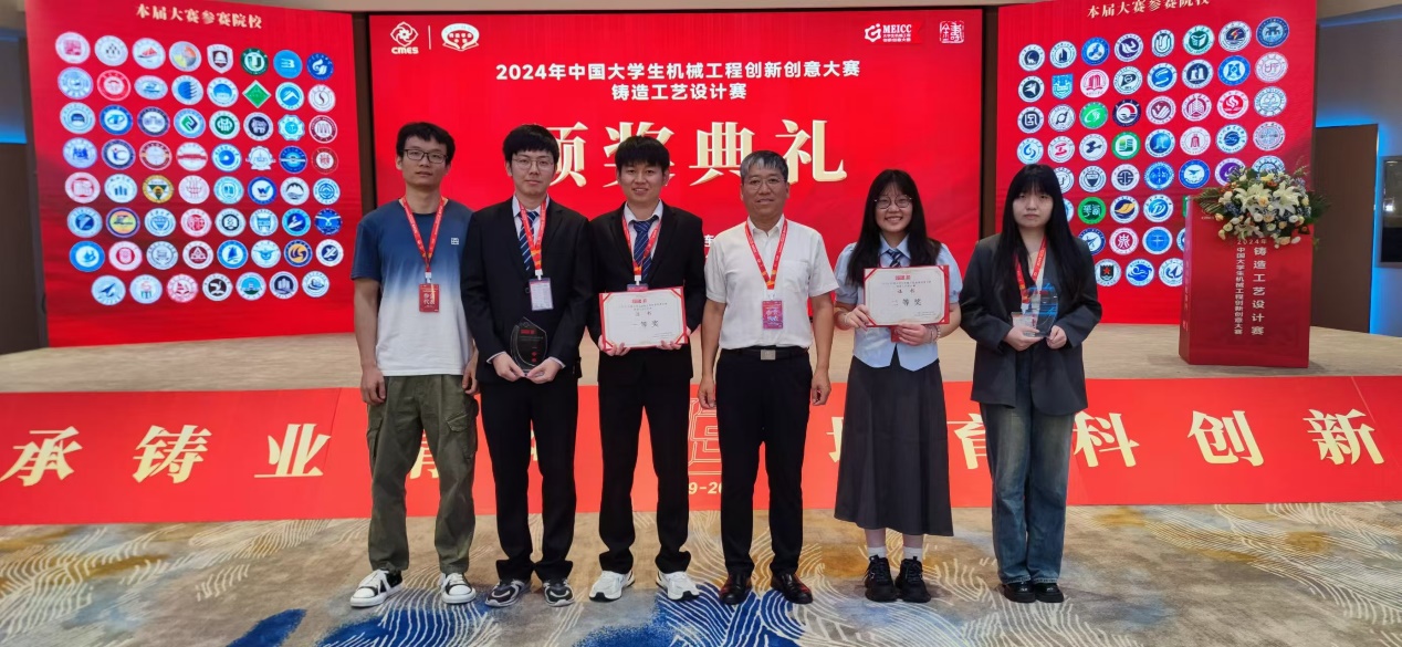 由中国机械工程学会主办,中国机械工程学会铸造分会承办的“2024年中国大学生机械工程创新创意大赛铸造工艺设计赛全国总决赛于2024年7月31日-8月2日在大连市开赛。研究生组尚坡、王鹭和程健森,本科生组骆怡彤和蒙娅在范金辉老师的指导下,取得了全国一等奖和全国二等奖的优异成绩,这是beat365官网研究生组连续第二次获得全国一等奖,也是本科生组取得的历史最好成绩。
