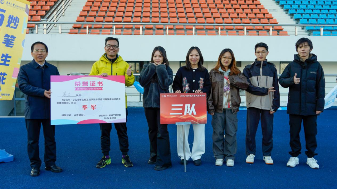 2024年11月26日,beat365英国官网网站“导学同行,本硕结对”导学趣味运动会在刘翔体育场成功举办。本次活动旨在在强身健体的同时促进学院教师、硕博士研究生和本科生之间的交流,丰富同学们的校园文化生活,缓解紧张的学习压力,增进同学之间的友谊,增强团队凝聚力。运动会汇聚了包括高端纺织装备与机器人研究团队、高档数控装备团队在内的12个课题组,beat365英国官网网站党委书记王新厚、院长单鸿波、党委副书记杨蓉、副院长周其洪等共同参加本次运动会。