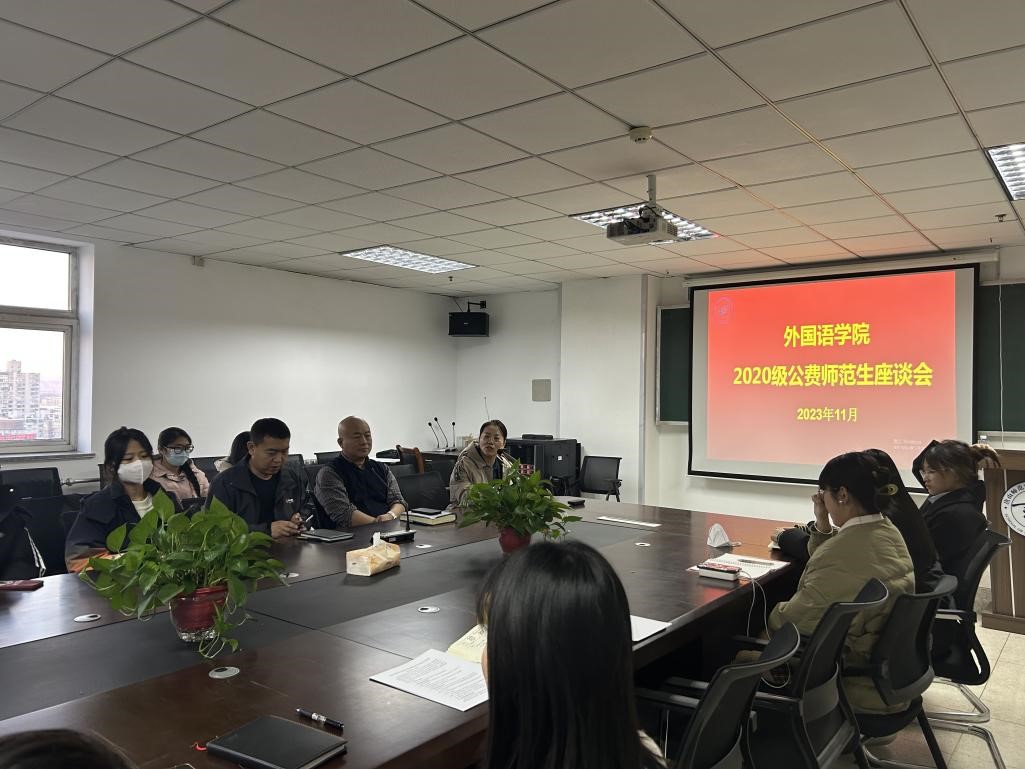 2023年11月30日下午,Beat365官方网站在1521会议室召开本学期2020级公费师范生座谈会,Beat365官方网站党总支书记刘建宏、院长唐翠云、副书记兼班主任谷世海、学业导师许文英、公费师范生论文指导老师和全体2020级公费师范生参加了本次座谈会。