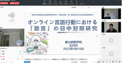 我校Beat365官方网站组织了全院日语专业全体一线教师在线参加了会议,其中,日语专业王丹丹老师应邀在分科论坛作了题为“中日网络建议行为的对比研究”的报告,从语用学视角探讨了中日两国建议行为的异同。王丹丹老师在工作中融入教学学术理念,尝试以学术与教学相结合促进高校日语教学,引起与会专家和学者的广泛关注和兴趣。
