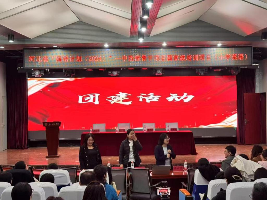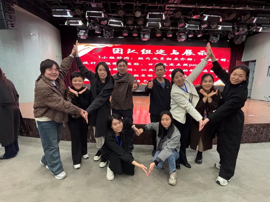“国培计划(2024)”小学英语骨干教师培训开班仪式结束后,班主任组织全体参训教师开展了团建活动。参训教师们结成小组、相互介绍、增进了解。各小组围绕团队名称、口号及独特pose的设计展开热烈讨论。
