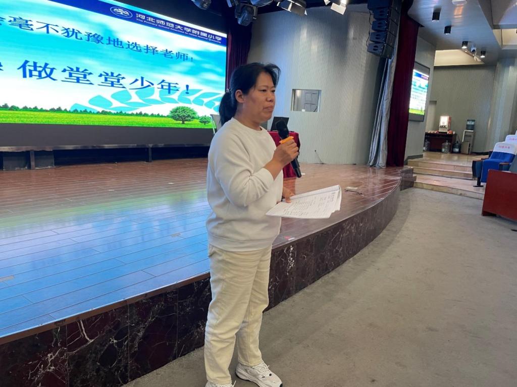 行唐县口头镇秦台明德小学的赵丽华老师饱含深情的向同学们介绍自己从教25年,一直走在圆梦的路上。她勉励同学们要以扎实的学识走上三尺讲台,发挥教育家的精神引领人、温暖人、凝聚人、感召人、教化人。成为一名优秀的教师的秘诀就是撸起袖子加油干,从干中成长,积累经验成就自己。