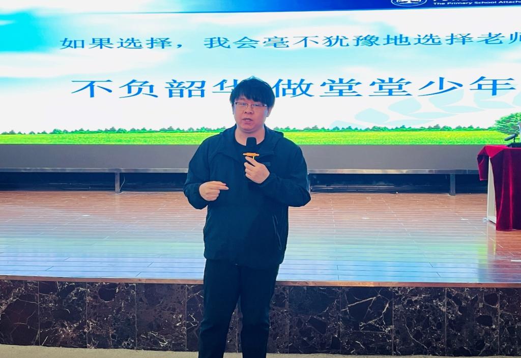 来自河北师范大学附属小学的岳丽霞老师结合自身从教经历,从“教育初心”“职业成长”和“人生规划”三个维度展开分享。她强调,教师职业不仅需要扎实的专业知识,更要有热爱教育的赤诚之心。通过生动的教学案例,她向同学们展示了如何将教育理想融入日常实践,并鼓励大家尽早制定职业目标,夯实教学技能,在实践中成长。