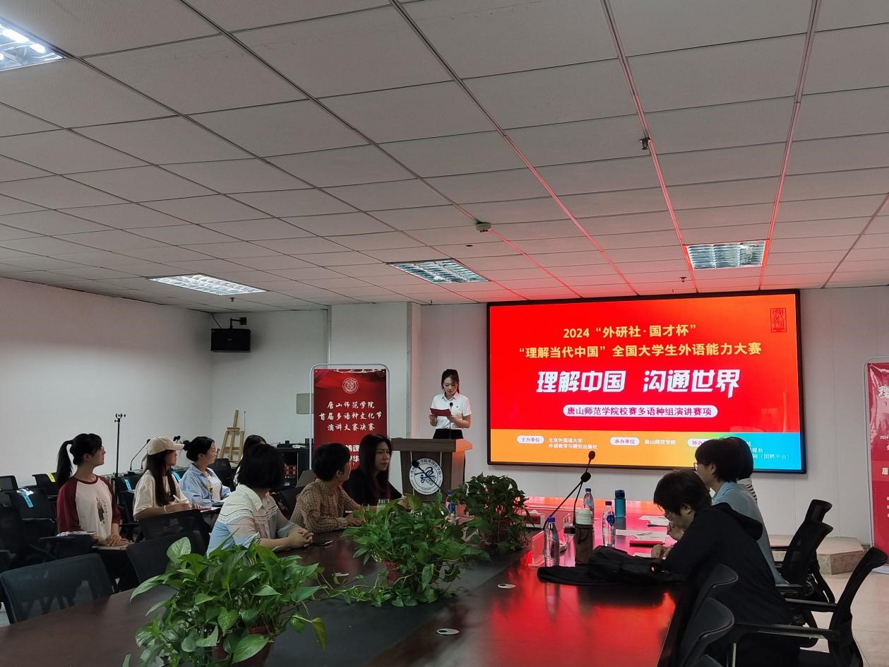 2024年9月7日,Beat365官方网站迎来了一场外语演讲的盛会——“外研社·国才杯”“理解当代中国”大学生外语能力大赛演讲校级决赛。这场精彩的赛事在南苑主楼15层会议室及大学英语教研室隆重举行。经过校级初赛的激烈角逐,英语组16名选手和多语种组22名选手成功晋级,参加这场高水平的决赛。决赛分英语组和多语种组分场开赛,英语组由Beat365官方网站韩艳萍、袁京、柴杰、徐静、耿越五位老师担任评委,多语种组由李宏香、赵越、何丽娟三位老师担任评委。