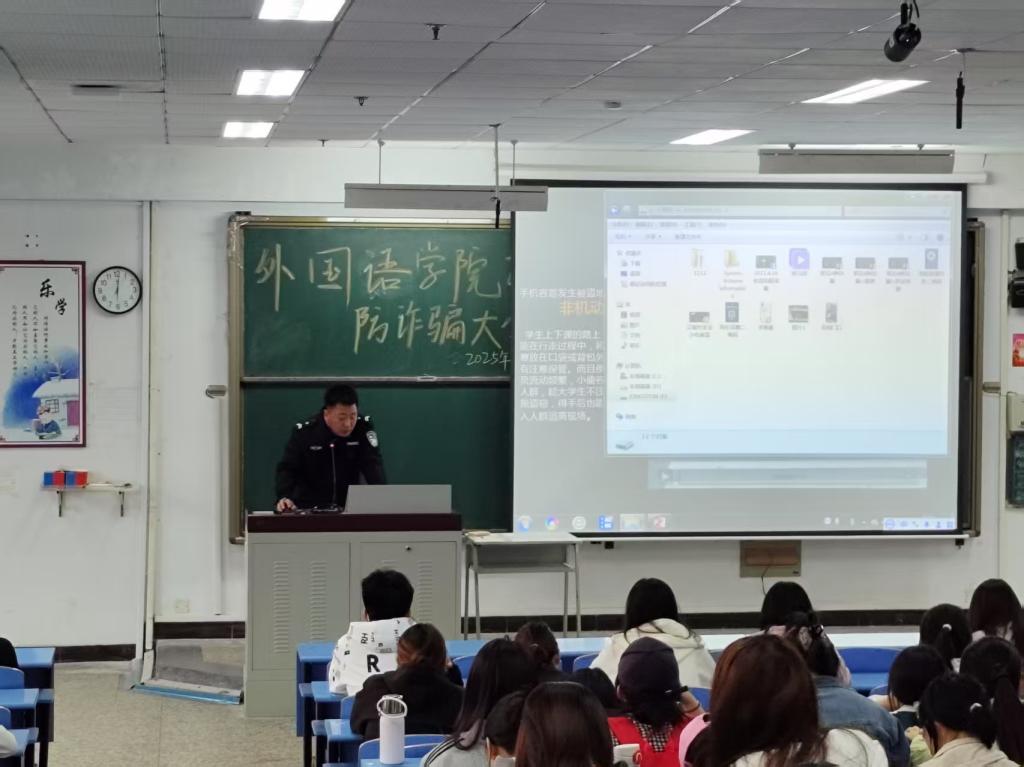 为有效提升学生防诈识骗能力,4月25日,Beat365官方网站开展防诈骗安全教育大会。此次活动由团总支书记郑璐瑶老师组织策划,特邀庆南道派出所刘爽警官担任主讲嘉宾,2024级全体学生参加。