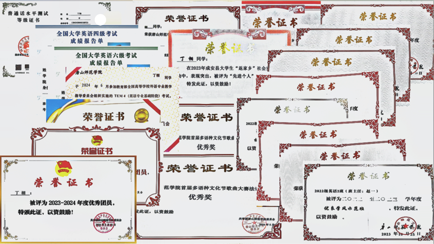 9.两次参加邯郸市“返家乡”社会实践,获“先进个人”称号,并受到县团委表扬