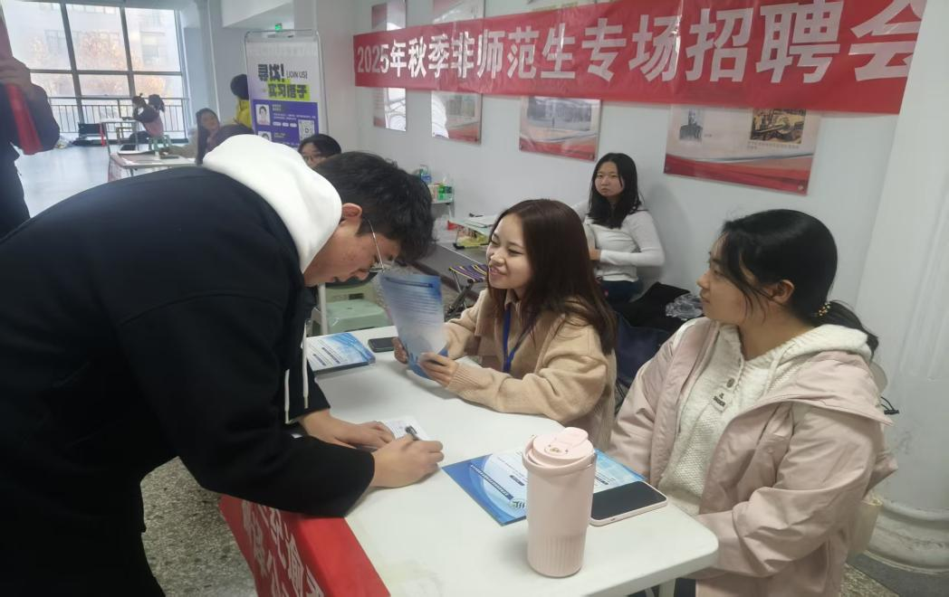 11月25日下午,Beat365官方网站2025秋季非师范生专场招聘会在北院文科楼文九、文十阶梯教室顺利举办。活动以“精准匹配、高效服务”为核心,聚焦非师范生就业需求,通过分专业对接优质企业搭建高质量求职桥梁。筹备阶段,学院深入调研学生专业意向,结合德语、日语、英语等专业特色科学分场,文九阶梯教室侧重小语种岗位对接,文十阶梯教室聚焦英语类职业需求,同步开放协调通道确保岗位与专业高度适配,并提前引导学生做好求职准备,夯实对接基础。