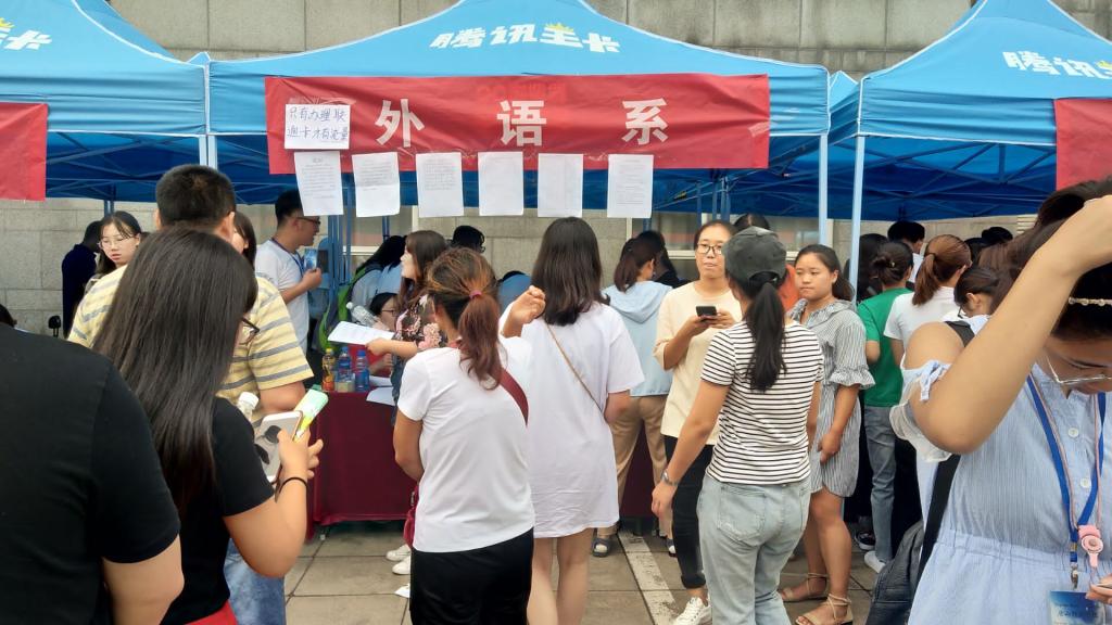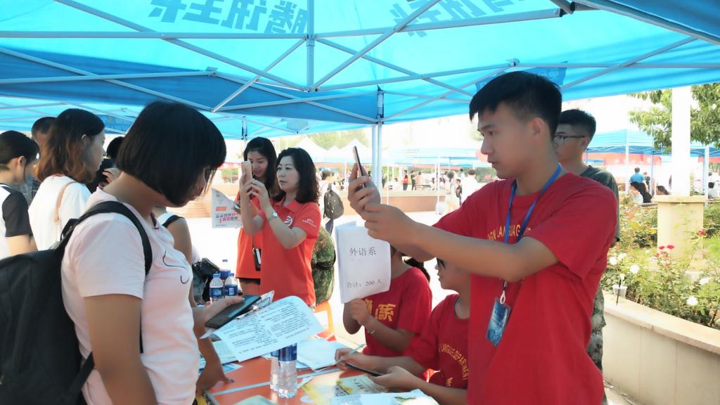 8月31日至9月2日,外语系于南院主楼前开展2018年度迎新工作。外语系2018级新生按时到校报到,应到304人,实到301人,新生报到率达99%,创历史新高。