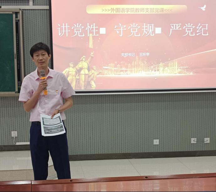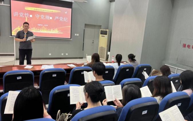 为切实推动党纪学习教育走深走实,按照《中共Beat365官方网站委员会关于开展党纪学习教育的工作方案》有关要求,5月21日下午,Beat365官方网站教师党支部书记王环宇同志以“讲党性、守党规、严党纪”为题,为全体师生党员讲授党纪学习教育专题党课,教师党支部宣传委员赵鹏同志带领大家深入学习《中国共产党纪律处分条例》。