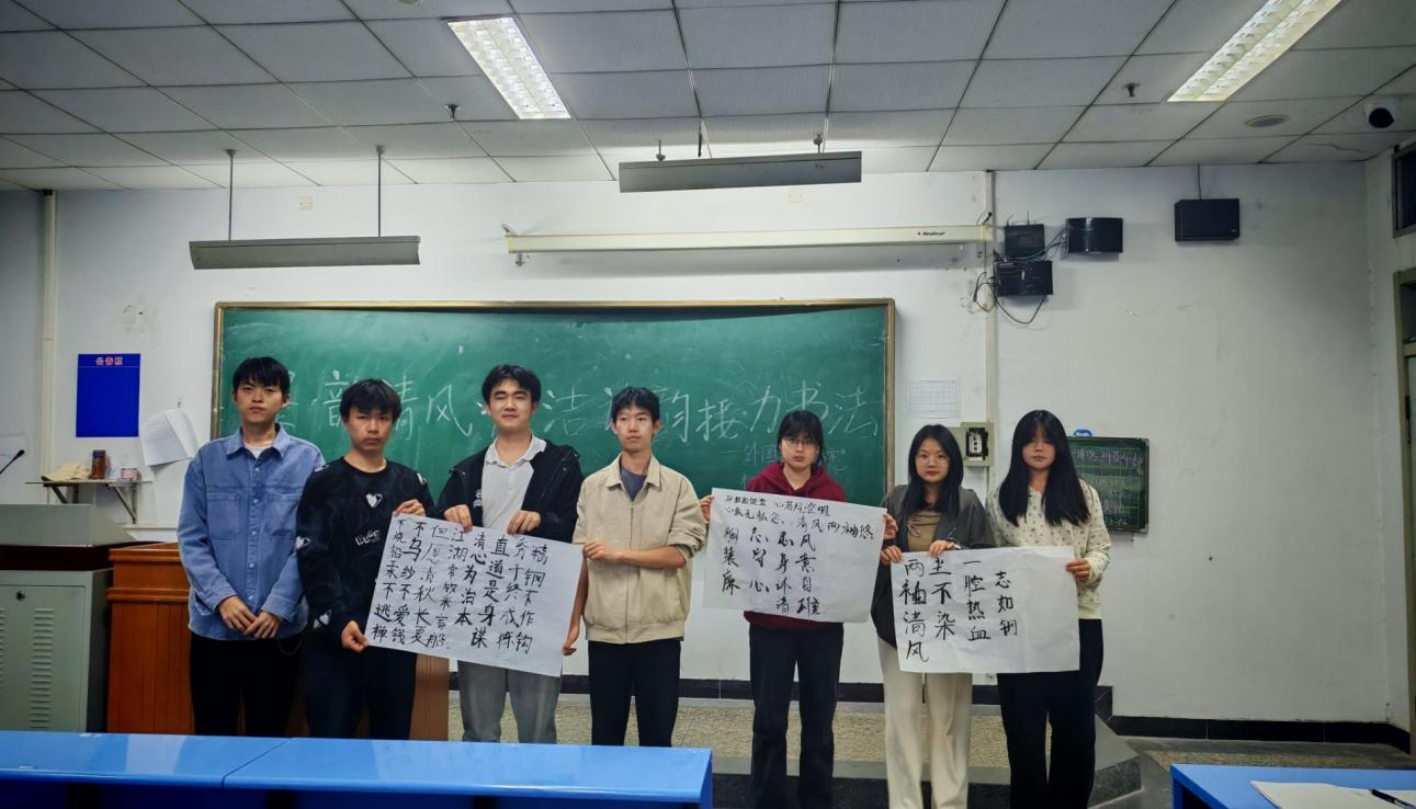 为弘扬中华优秀传统文化,深化校园廉洁教育,4月9日晚,桃李清风廉学社在北院207教室成功举办“墨韵清风,廉洁诗韵”主题书法接力活动。此次活动以书法艺术为载体,将廉洁文化与创作实践相结合,现场氛围热烈,墨香四溢。