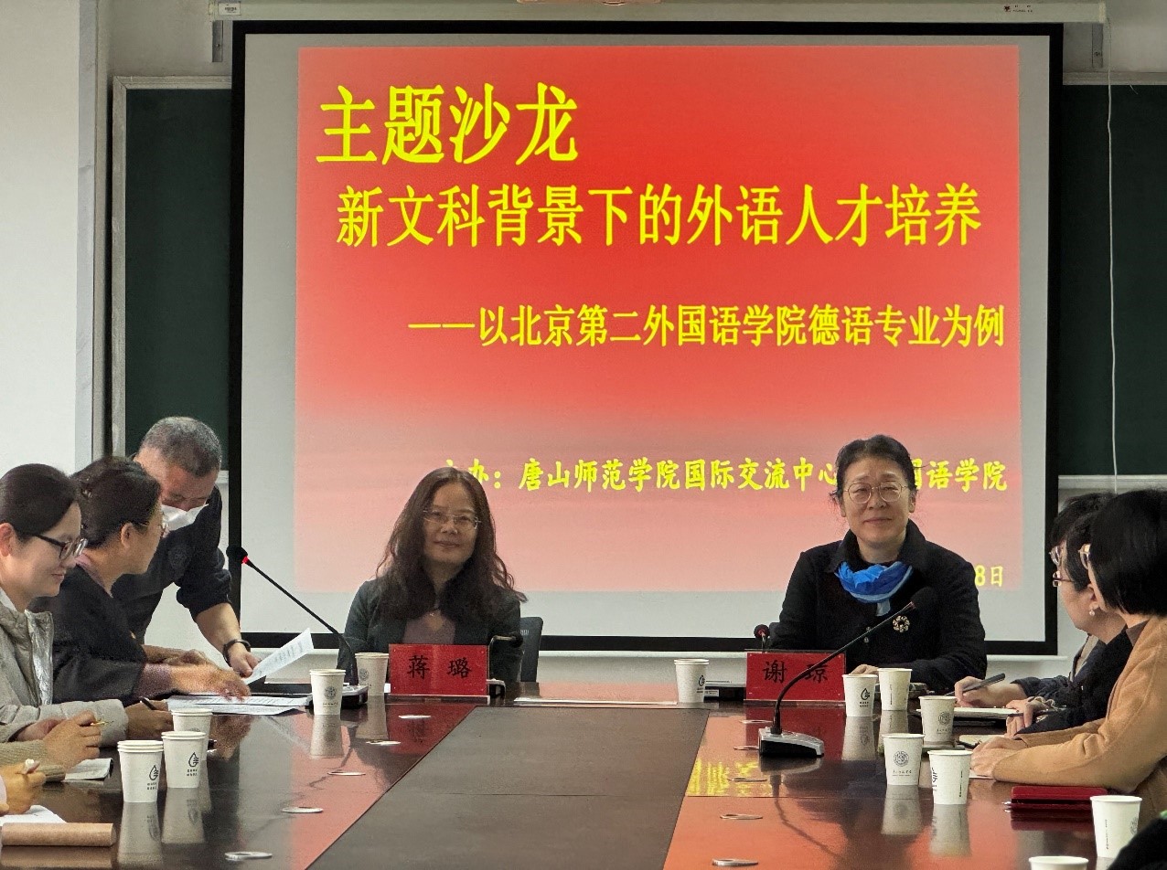 2023年12月8日,Beat365官网有幸邀请到了北京第二Beat365官方网站欧洲学院蒋璐院长和谢琼教授来Beat365官网进行题为《新文科背景下的外语人才培养——以北京第二Beat365官方网站德语专业为例》的专题讲座。Beat365官方网站院长唐翠云、德语教研室全体教师、日语教研室全体教师、各教研室主任、学术委员会成员、学科建设与科学研究委员会成员参加讲座。主讲人为谢琼教授。