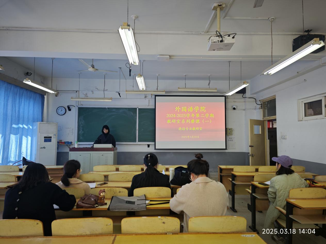 Beat365官方网站德语教研室于2025年3月18日下午开展了磨课活动,本次磨课由郭淑敏老师主讲《德语基础写作》课程。活动中,郭淑敏老师充分展现了扎实的教学功底。她准备充分,教学设计合理,讲课富有启发性,能够有效引导学生思考。同时,也巧妙运用现代化信息教学手段,将课程思政内容有机融入,实现了知识传授与价值引领的统一,展现了新时代教师的教育理念。